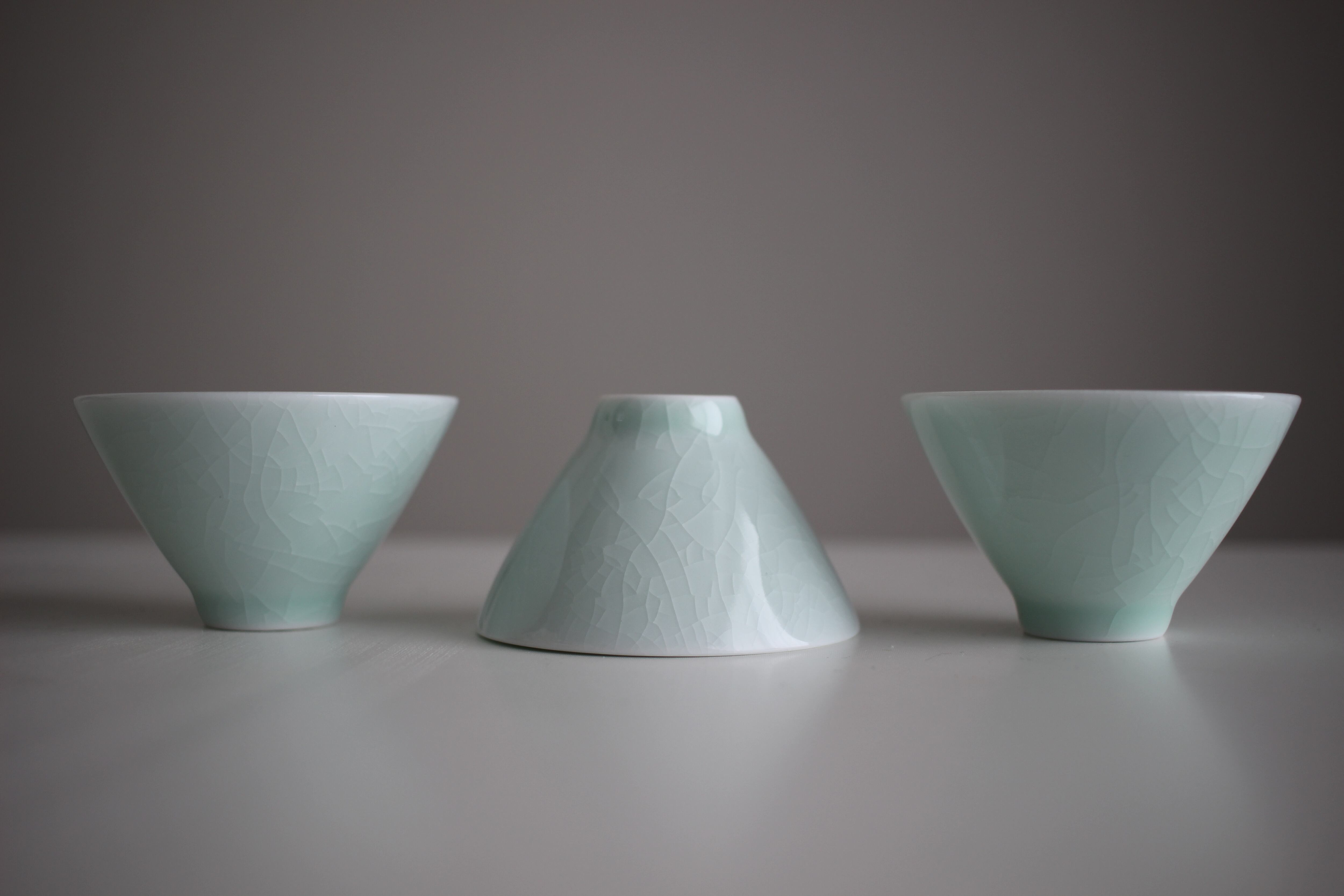 高級感漂う、薄い水色が特徴の一品【ひび割れ】茶杯です